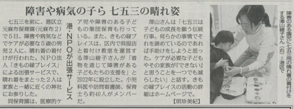 今回の七五三企画は、港区の地域団体のつながりから「きもの縁ブレイス」さんよりお声がけをいただいたことをきっかけに実現しました。