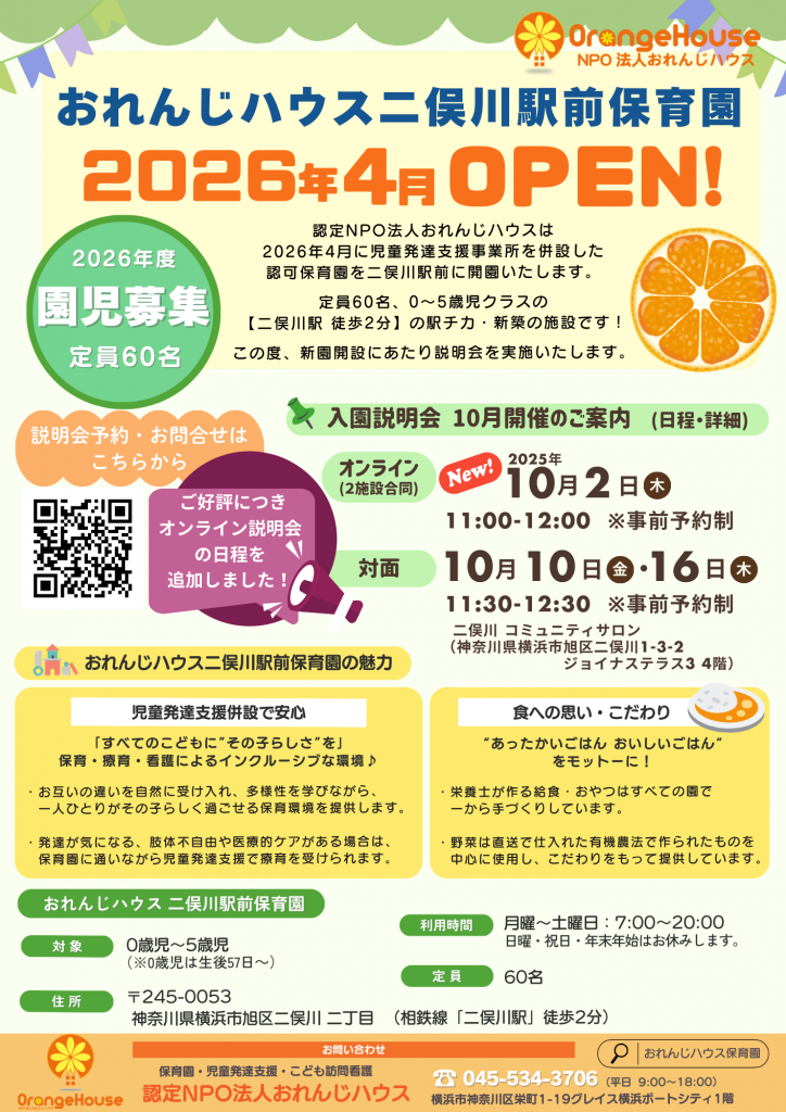 【入園説明会のご案内】2026年4月開園の認可保育園に関する説明会 10月開催のお知らせ